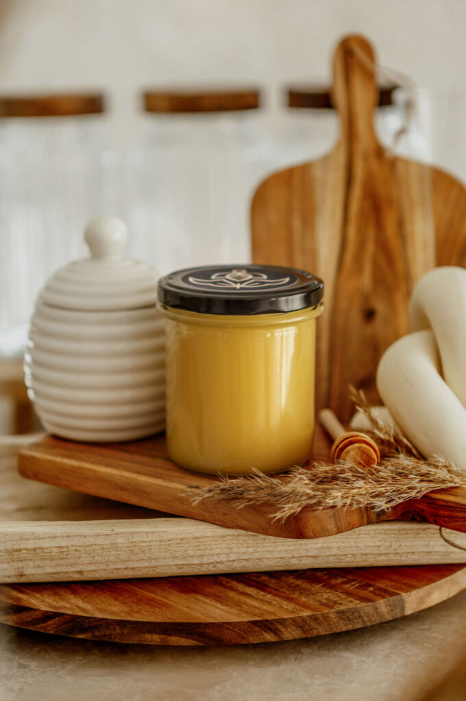 - Kolor i struktura miodu – jasno żółta, głęboka barwa tego skrystalizowanego miodu tylko na powierzchni wydaje się twarda; po zdjęciu pierwszej warstwy odkryjesz przesiąkający nektarem miód
